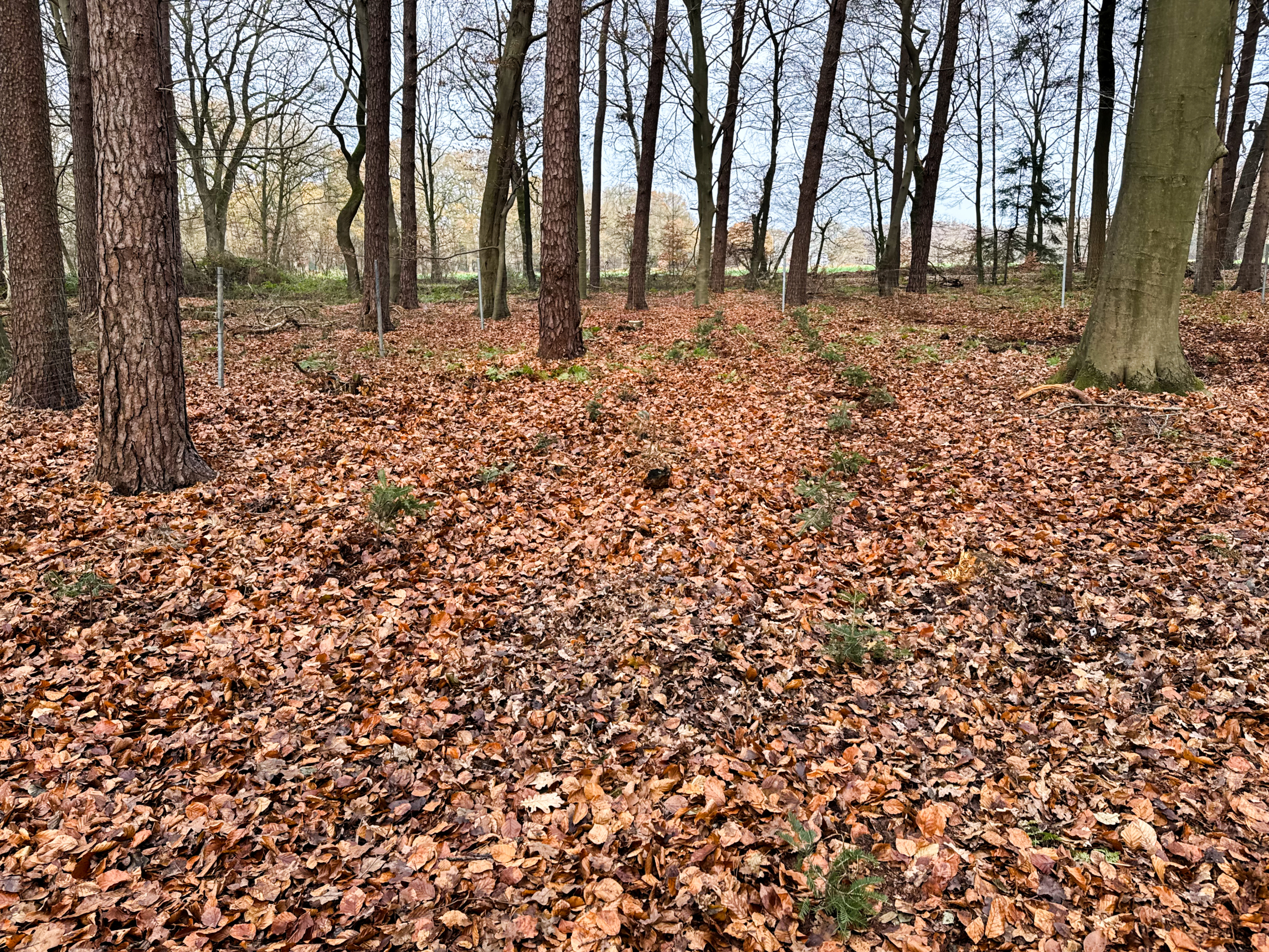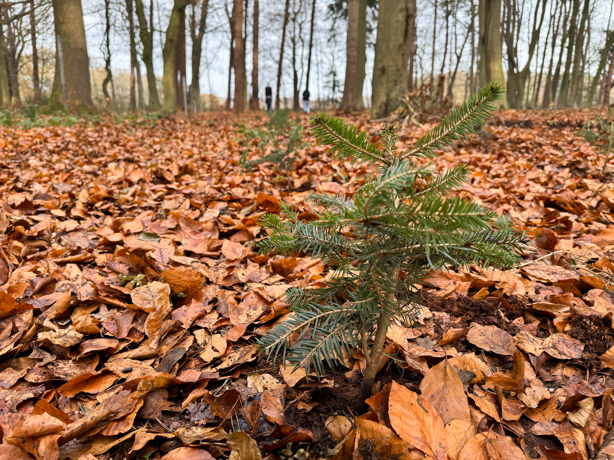 Zum Einsatz kamen ausschließlich heimische Baumarten, darunter u.a. Hainbuche, Walnuss, Eiche, Weißtanne, Küstentanne, Elsbeere und Bergahorn. Die vielfältige Baumartenwahl stärkt die ökologische Stabilität der Fläche und trägt zur Entwicklung eines widerstandsfähigen Mischwaldes bei.