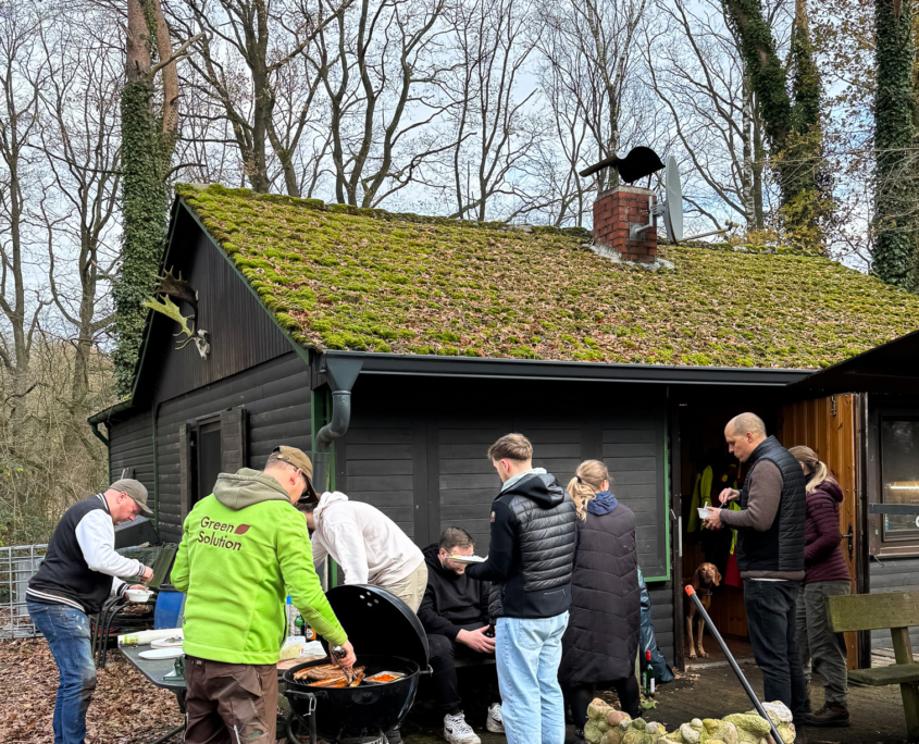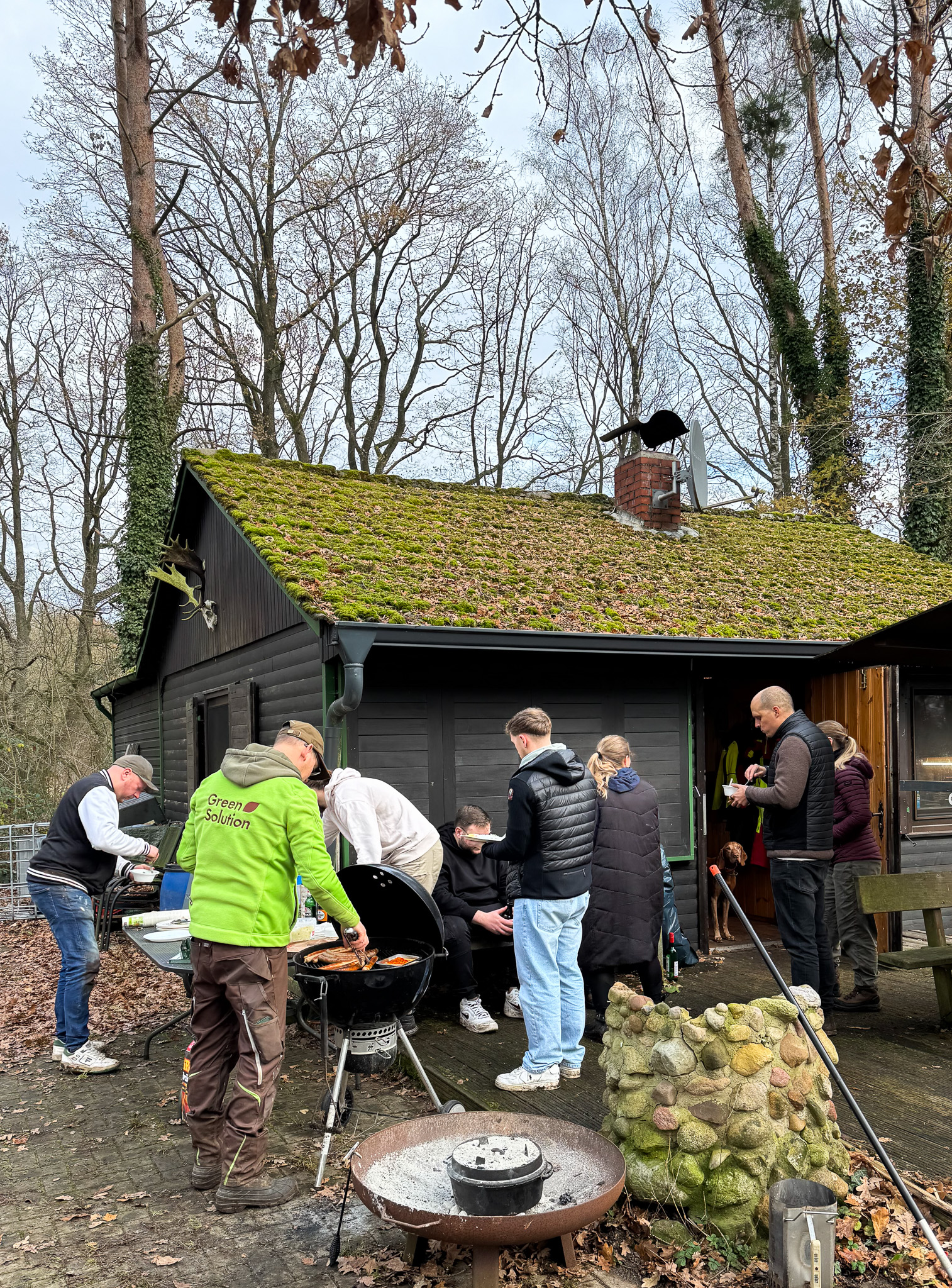 Nach getaner Arbeit ließen die Teilnehmenden den Pflanztag in entspannter Runde ausklingen. Es gab frisch zubereitetes Schichtfleisch aus dem Dutch Oven, von dem sich alle bedienen konnten, gegrillte Würstchen sowie heiße und kalte Getränke – ein gelungener Abschluss eines erfolgreichen Tages.